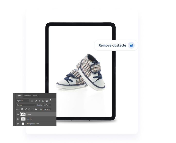 In this shadow service, we balance photos’ depth of field, measuring the space between the object and surface. Then we add a realistic shadow, and you get the desired result.